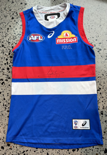 Western Bulldogs 2024 Signed Match Worn* Home Guernsey, worn in various rounds throughout the 2024 home and away season.