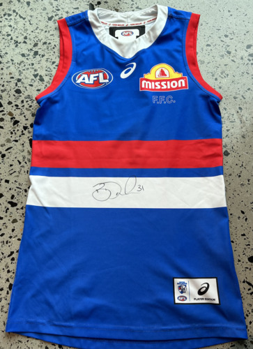 Western Bulldogs 2024 Signed Match Worn* Home Guernsey, worn in various rounds throughout the 2024 home and away season.