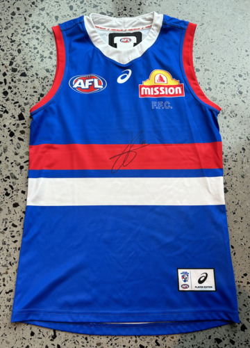 Western Bulldogs 2024 Signed Match Worn* Home Guernsey, worn in various rounds throughout the 2024 home and away season.